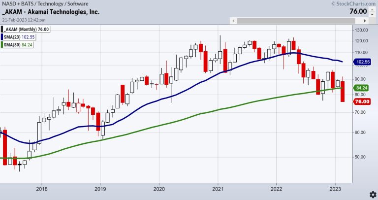 Akami is a cloud computing company in the tech sector that deals with online security. Up until mid-2022, the trend was up.