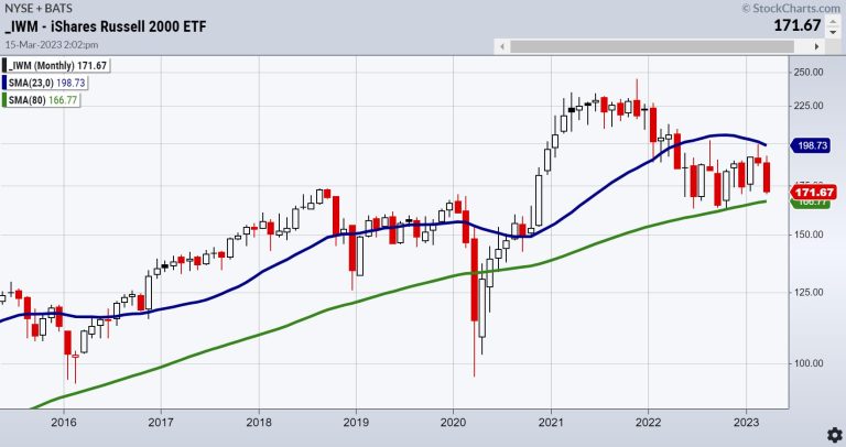 “The Russell 2000 IWM is the granddad of the Family. Hence, we take his performance seriously. At the start of 2022, IWM was already breaking down, well ahead of the S&P 500 (SPY). The monthly chart is the best one to use for a longer-term outlook for 2023.