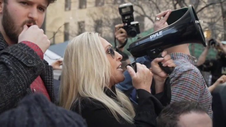 With a megaphone in hand, Greene led a rally outside the New York City courthouse to protest the indictment and support Trump before his arraignment Tuesday, but progressive representative AOC blasted her efforts as ‘shameless bigotry.’
