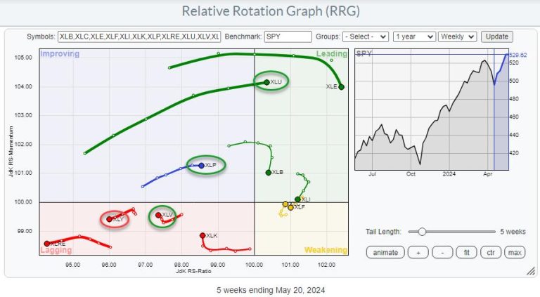 Or by the sector rotation moving toward more offensive sectors and mid- and small-cap segments, joining their large-cap counterparts in more positive territory on the RRG.