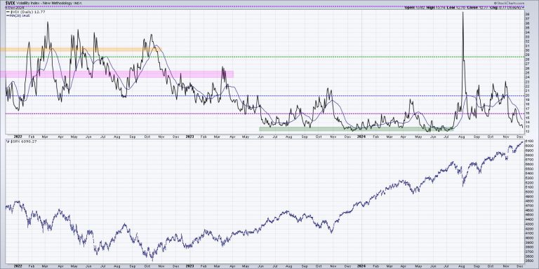 A number of my recent podcast interviews have included discussions of the VIX and why volatility may be the most important metric to follow. My fellow StockCharts contributor Tom Bowley (a fan of the Carolina Panthers, a team with an equally painful record to my Cleveland Browns) told me it was at the top of the list of warning signs to watch for into early 2025.