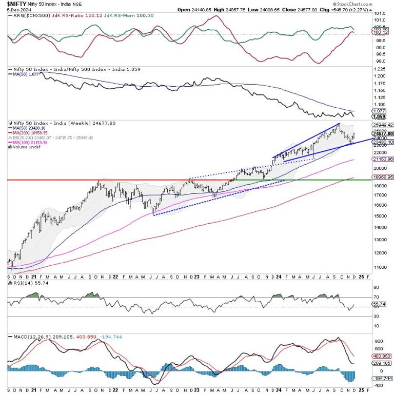 The markets have paused themselves at a crucial juncture. The Nifty has closed above the 50-DMA, which is presently at 24548. It is just a notch below the 100-DMA at 24707. This level also coincides with the 20-week MA placed at 24720 on the weekly timeframe. So, unless the Nifty closes well above 24720, we have to fairly take the zone of 24700-24750 as an immediate important resistance for the markets on a closing basis. For this technical rebound to extend, moving past and staying above 24750 would be necessary for the markets. On the other hand, the Nifty has rebounded off the 50-week MA; this level, placed at 23432, is the most crucial support for the Nifty if it has to keep the current primary trend intact.