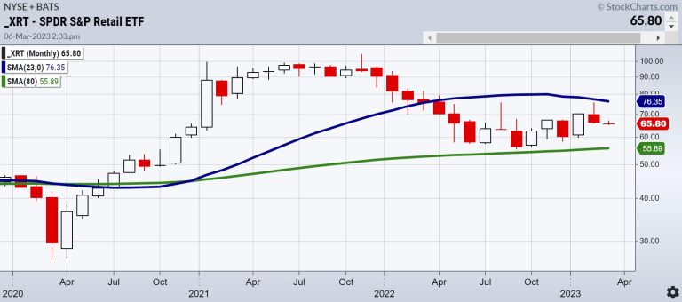Looking at Granny Retail, that business cycle not only leaves investors with the trading range resistance, it also shows how the Retail sector could be a harbinger of worse times this spring.